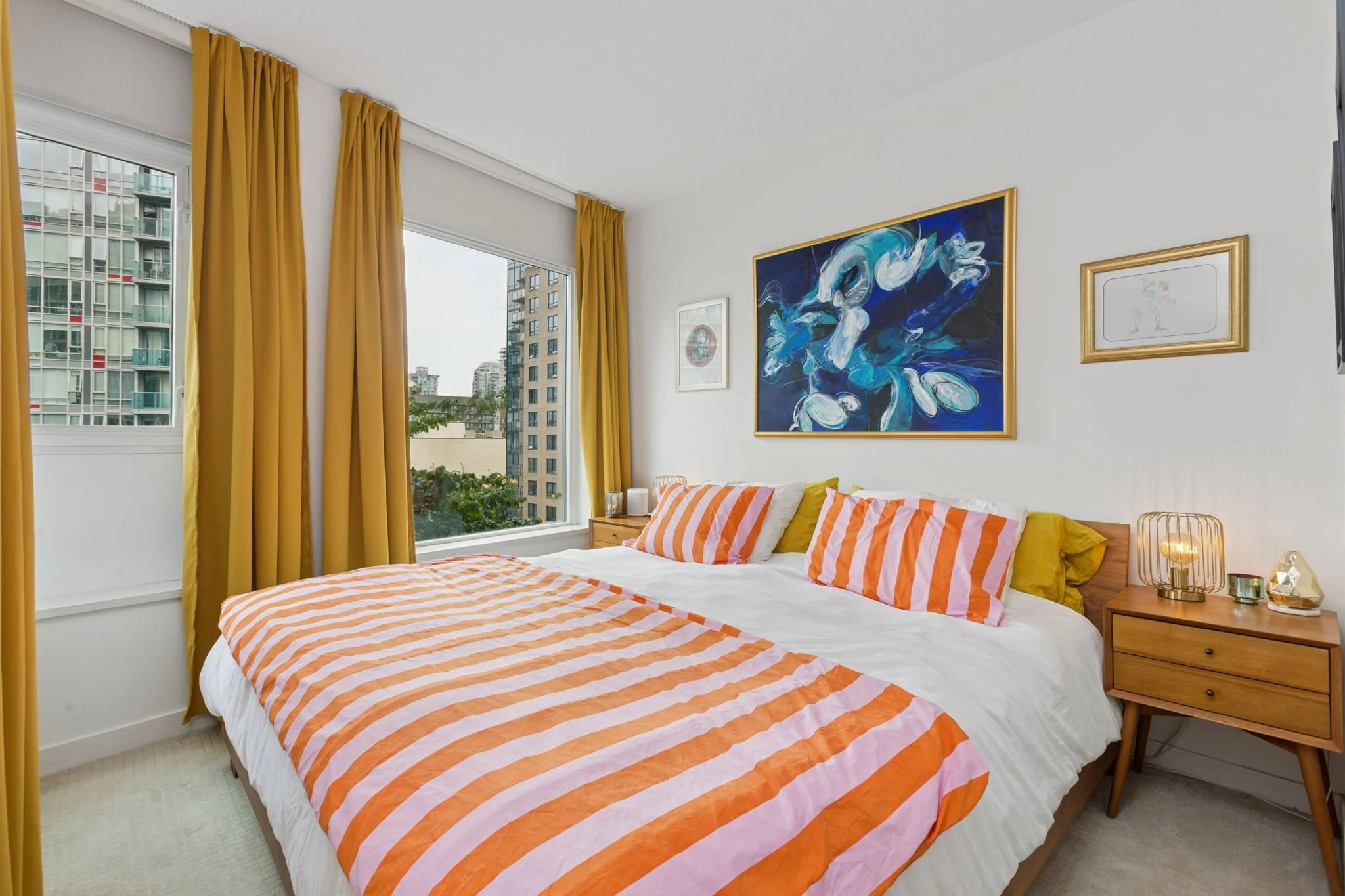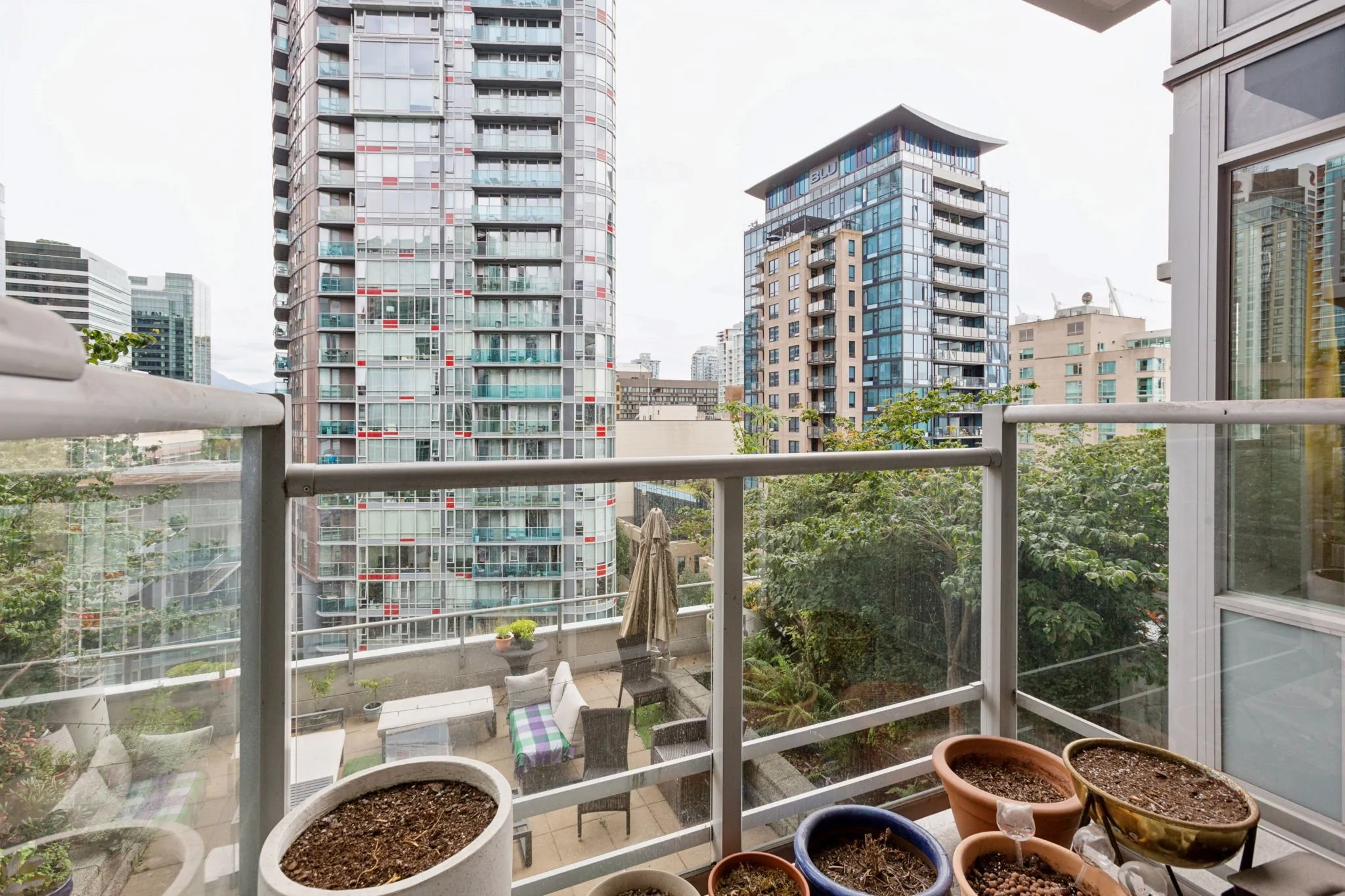 Bright & functional home in one of DT Vancouver’s most connected locations! This open layout features a modern kitchen w/ Miele & Liebherr appls, stone counters & custom cabinetry. Enjoy a separate den for your office, a sunlit solarium for lounging or creative space, plus a private balcony for fresh air & city views. Relax in the spa-inspired bath w/ soaker tub + separate shower. Fantastic building amenities: concierge, gym, whirlpool, theatre, lounge, BBQ deck & bike storage. 1 parking incl. Steps to Robson, Yaletown, seawall, library, Rogers Arena, shops, dining & transit. A walkable, well-kept home in a prime location!
